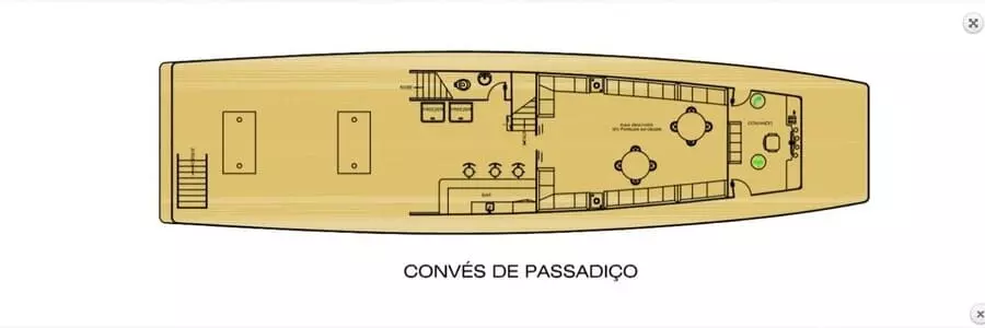 who seats all passengers leisurely at same time. The 3rd deck is a fully entertainment area, air-conditioned lectures room with library and tv/dvd, a bar with plenty
